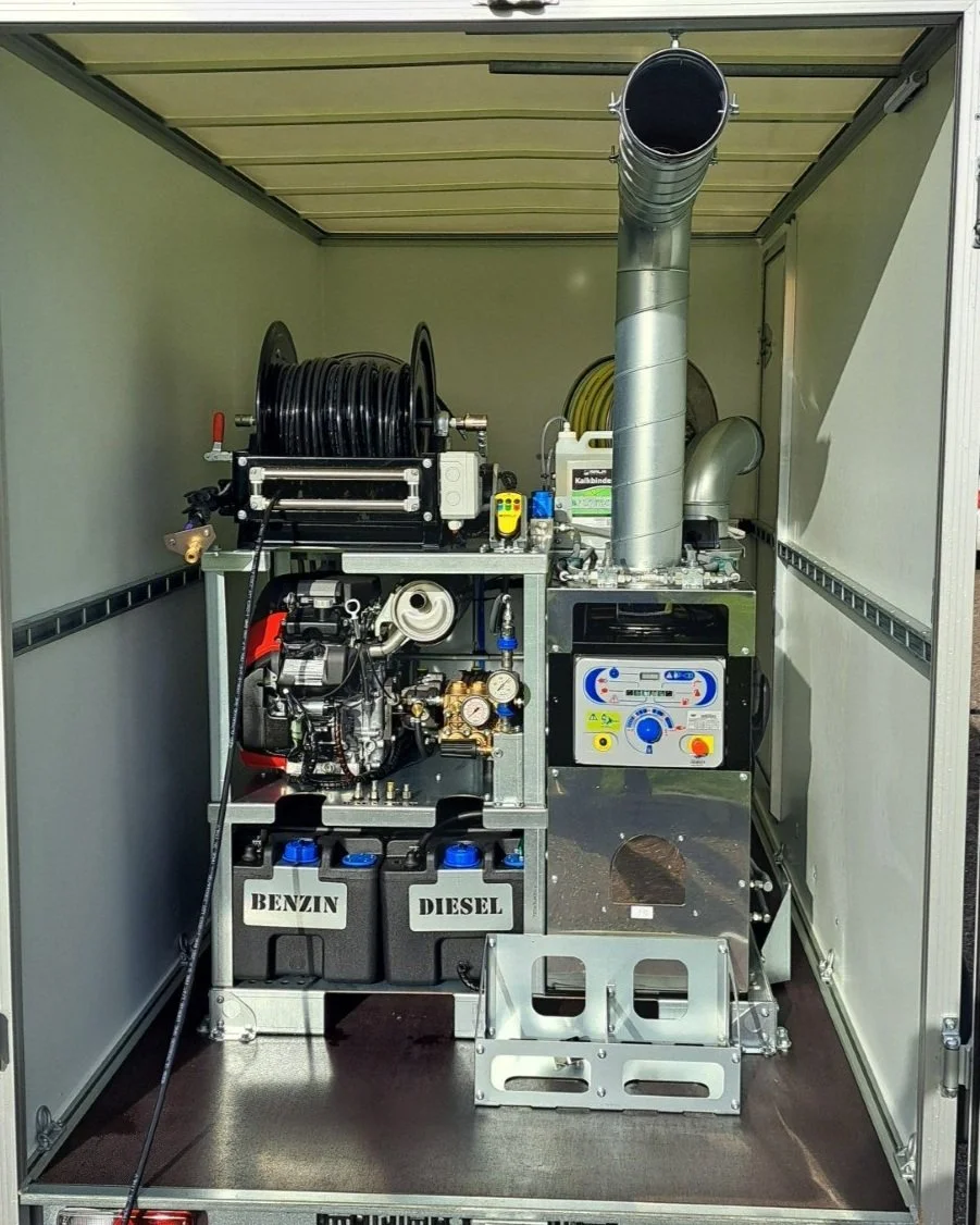 המערכת משלבת מערכת ניהול מים חכמה, יכולת תספוק מים ממקור חיצוני בצורה שוטפת, מים מזוקקים על ידי מערכת אוסמוזה הפוכה המזקקת עד אפס חלקיקי לכלוך לכל מיליון חלקיקי מים (מאפשר ניקוי קווי מתח גבוה חיים). מחמם מים מובנה עם טמפרטורה עד 90 מעלות, מפסק חירום וגלגלת חשמלית נשלטת מרחוק