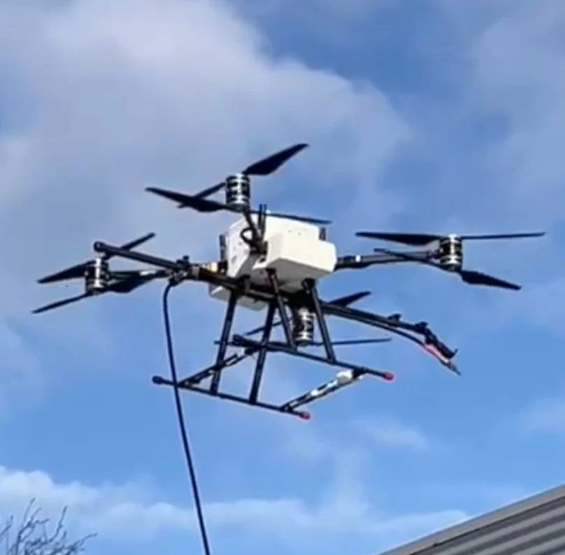 הצינור המחבר בין יחידת הקרקע לרחפן עשוי מחומר גמיש וחזק שמאפשר עבודה עם לחץ מים גבוה וטמפרטורת מים גבוהה, חזק דיו בכדי להתגבר על טיסה לא רצונית של הרחפן במלוא הכח כחלק מאמצעי הבטיחות הרבים של הרחפן. יחידת הקרקע נשלטת מרחוק על ידי המטיס או איש צוות קרקע ייעודי בהתאם למשימה
